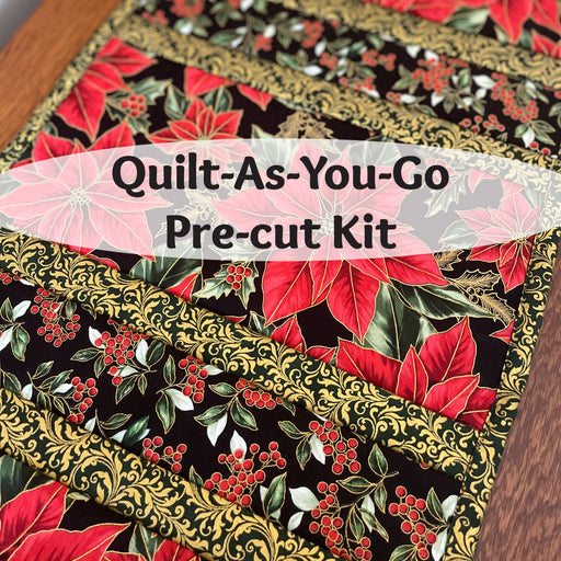This is a Quilt-As-You-Go Table Runner Kit using the Glisten collection by Sandy Gervais for Riley Blake Designs. Simple pattern that can be comple...