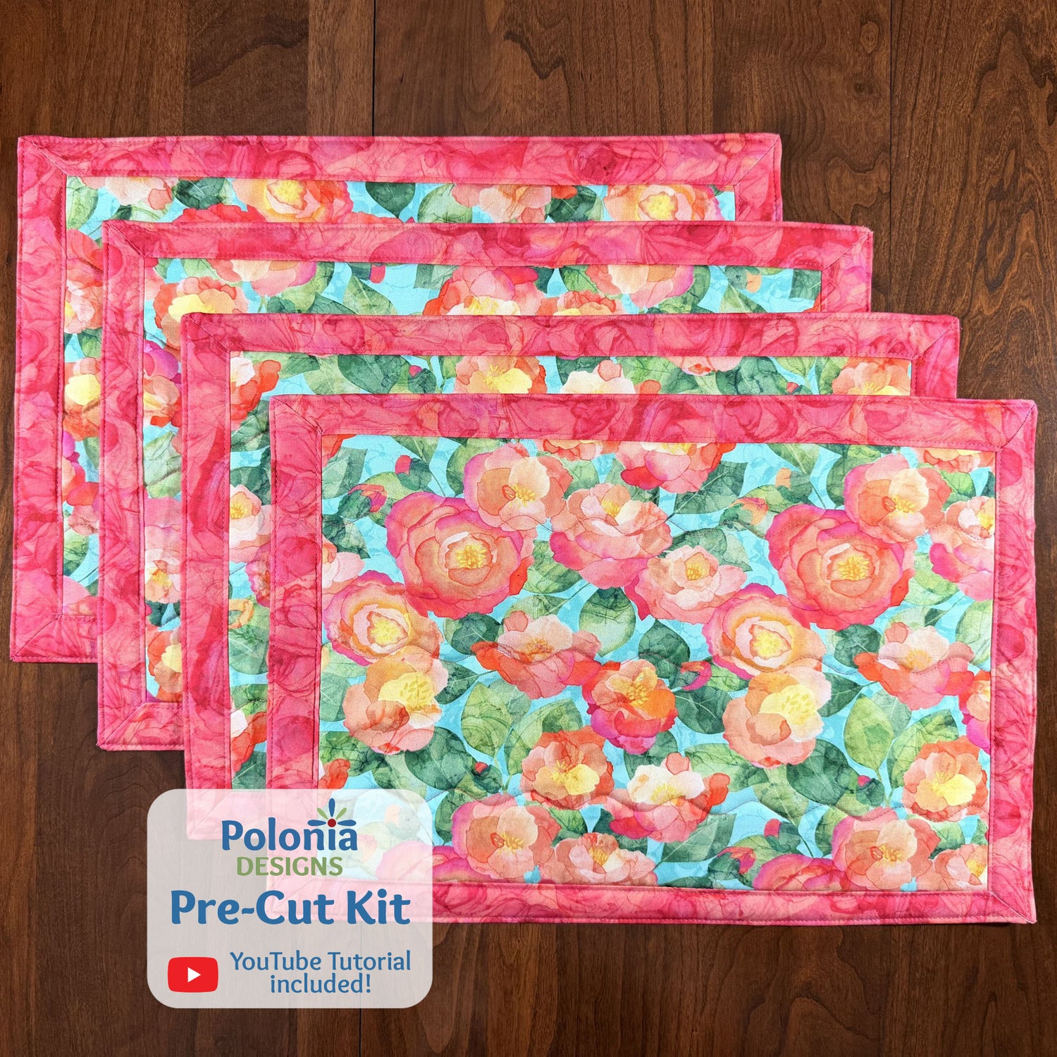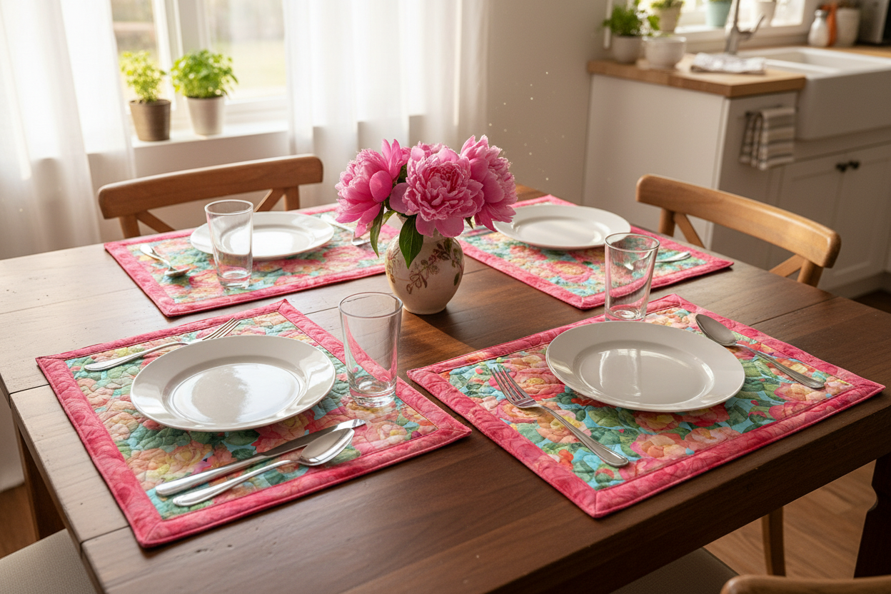 Veranda 12"x18" Self-Binding Quilted Placemats Kit-Pink | Set of 4